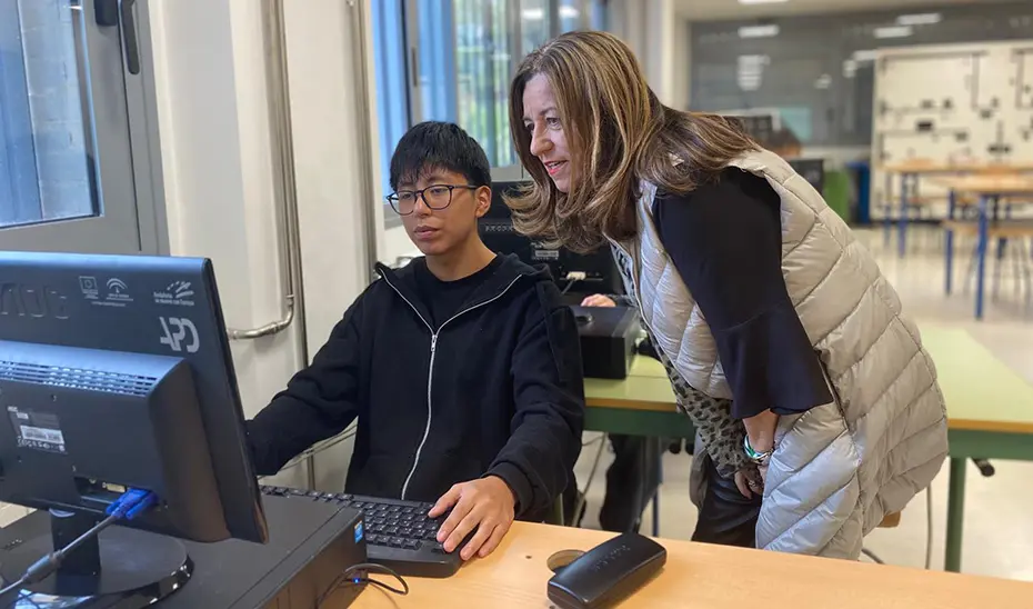 La Consejería de Desarrollo Educativo y Formación Profesional ha destinado 2,1 millones de euros a las obras de sustitución y ampliación de espacios para ciclos formativos en el Instituto de Educación Secundaria Al-Bujaira de Huércal-Overa (Almería). La consejera María del Carmen Castillo ha visitado las nuevas instalaciones durante su vistita al centro.