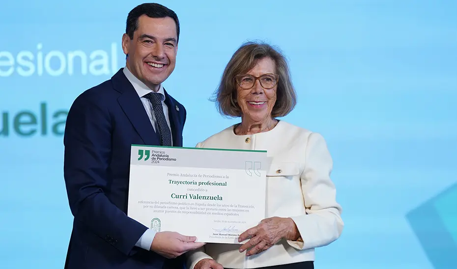 “Curri Valenzuela recoge el testigo de grandes compañeros y referentes del periodismo de Andalucía y España como son Antonio Burgos, María Teresa Campos y Paco Lobatón, distinguidos en pasadas ediciones. Gracias, Curri, por llevar, al igual que hicieron ellos, tan a gala ese orgullo por tu tierra, por Andalucía”.