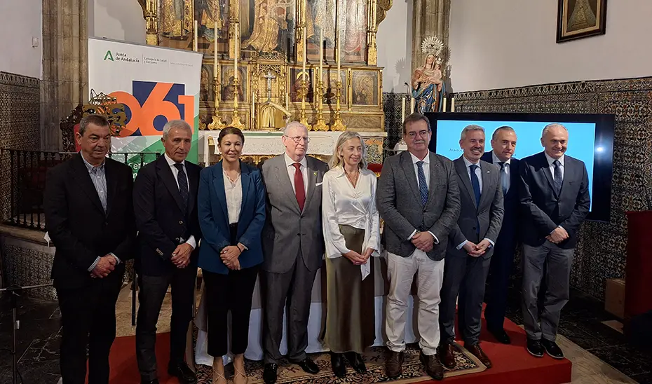 El Centro de Emergencias Sanitarias 061, perteneciente al Servicio Andaluz de Salud de la Consejería de Salud y Consumo, ‘cardioasegura’ los recorridos procesionales de la Semana Santa en Sevilla un año más, con la colaboración de Ayuntamiento de Sevilla y del Consejo General de Hermandades y Cofradías de Sevilla. Esta iniciativa ha sido presentada por la consejera de Salud y Consumo, Rocío Hernández, en un acto celebrado en la sede del Consejo General de Hermandades y Cofradías de la capital hispalense.