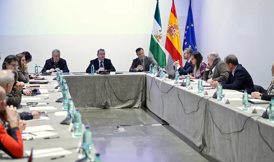 El consejero de Sanidad, Presidencia y Emergencias, Antonio Sanz, ha presidido la primera reunión de 2026 del Consejo Andaluz del Fuego (CAF), celebrada en el Palacio de San Telmo, tras la que ha anunciado la aprobación del borrador del Decreto de Coordinación, Organización y Funcionamiento de los cuerpos de bomberos en la comunidad autónoma y el Registro de su Personal para los servicios de Prevención y Extinción de Incendios y Salvamento (Speis).