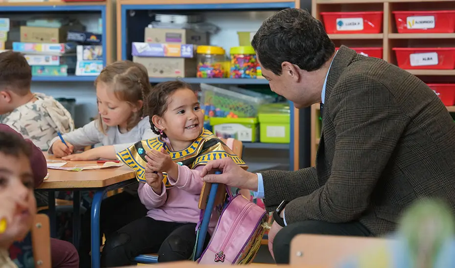 Un momento de la intervención de Juanma Moreno en el CEIP Bahía de Almerimar.
