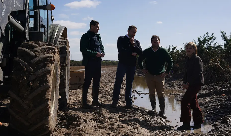 Para ello, Moreno ha aprovechado la visita a Andalucía del comisario europeo de Agricultura, Christophe Hansen, para visitar juntos en Jerez de la Frontera (Cádiz) algunas de las zonas agrícolas más afectadas por el tren de borrascas que castigó semanas atrás a toda la comunidad, y que de esta forma pueda tomar conciencia de la magnitud de las pérdidas que está padeciendo el campo andaluz por el daño en explotaciones y cultivos. En total, se estima que hay unas 33.000 afectados en toda Andalucía por las inundaciones.