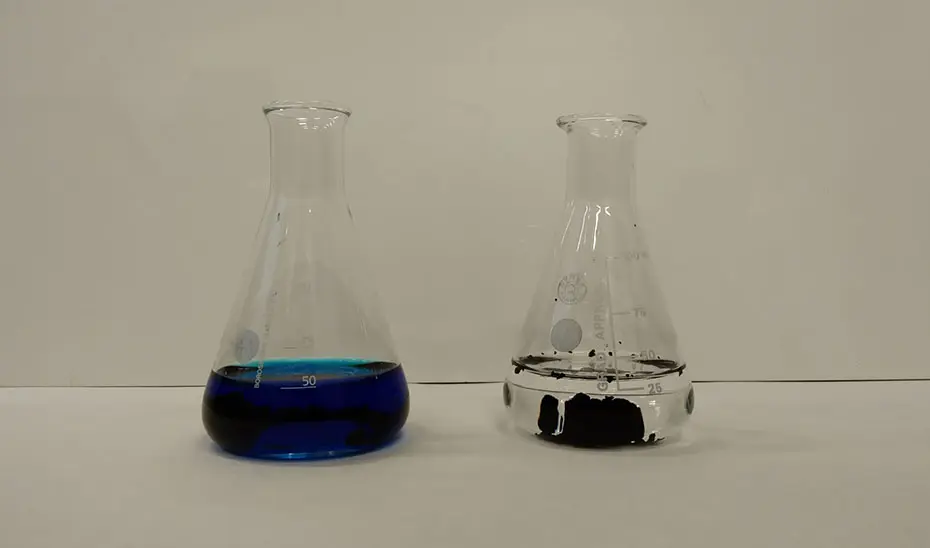Tras someterlo a distintas temperaturas, los expertos determinaron que el tratamiento a 400 ºC durante una hora ofrecía el mejor equilibrio entre rendimiento y propiedades del biocarbón obtenido. Posteriormente, comprobaron su eficacia en una disolución acuosa de azul de metileno, un colorante ampliamente utilizado para estudiar la capacidad de sustancias adsorbentes en tratamiento de aguas residuales. Los resultados mostraron porcentajes de eliminación cercanos al 100 % en condiciones óptimas.