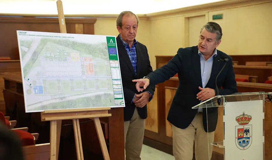 El consejero de la Presidencia, Interior, Diálogo Social y Simplificación Administrativa de la Junta de Andalucía, Antonio Sanz, y el alcalde de Andújar (Jaén), Francisco Carmona, han firmado un convenio de colaboración para la construcción del nuevo Centro de Coordinación Operativa (Cecop) en el Cerro del Cabezo, en este municipio jiennense, que reemplazará al área de emergencia que hasta ahora se viene levantando cada año con módulos de obra y en el que la Junta despliega el Centro de Atención Principal, conocido como hospital del Cerro, la sala de coordinación, el centro de transmisiones y el Puesto de Mando Avanzado (PMA), entre otros, durante la romería de la Virgen de la Cabeza.