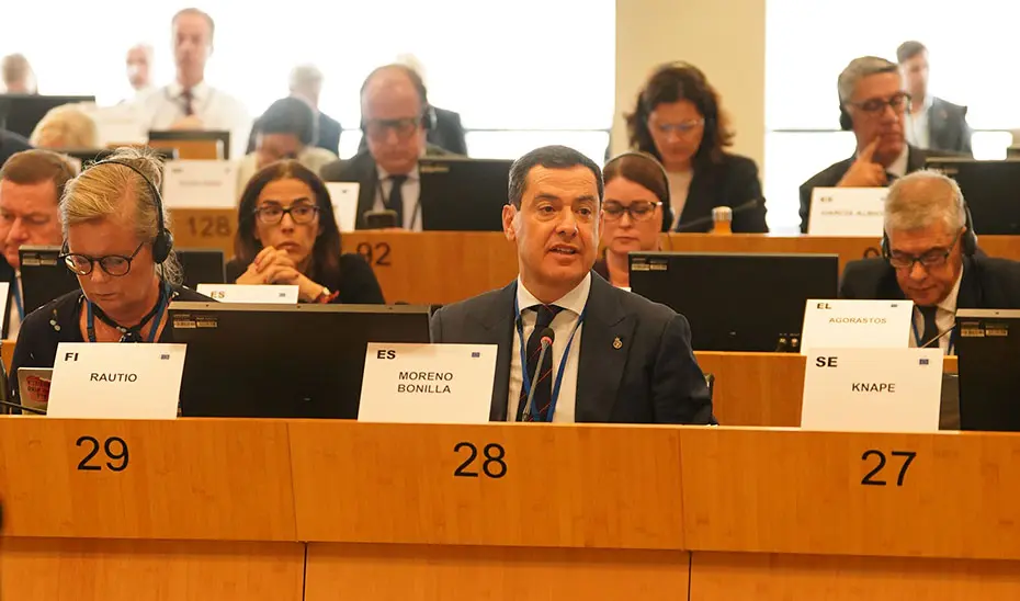 El presidente de la Junta de Andalucía, Juanma Moreno, ha defendido el papel de las regiones en la gestión de los fondos de cohesión y no centralizar ésta en los Estados de cara al marco 2028-2034, al mismo tiempo que ha asegurado que los ha calificado de vitales para muchos territorios como es el caso de Andalucía, que, según ha dicho, tiene un grado de ejecución muy alto y que ha logrado invertir todos los FEDER y FSE del marco anterior.