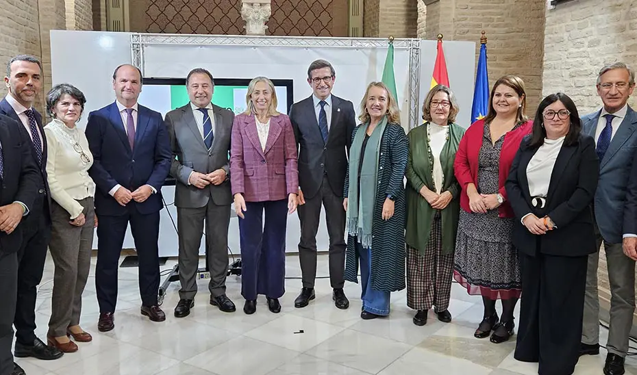 La consejera de Salud y Consumo, Rocío Hernández, y el consejero de Industria, Energía y Minas, Jorge Paradela, acompañados por el delegado del Gobierno de la Junta en Sevilla, Ricardo Sánchez, han presentado las partidas presupuestarias e inversiones que contempla el proyecto de Presupuestos de Andalucía para la provincia de Sevilla en 2025, cuya cantidad asciende a 870.440.548 euros.