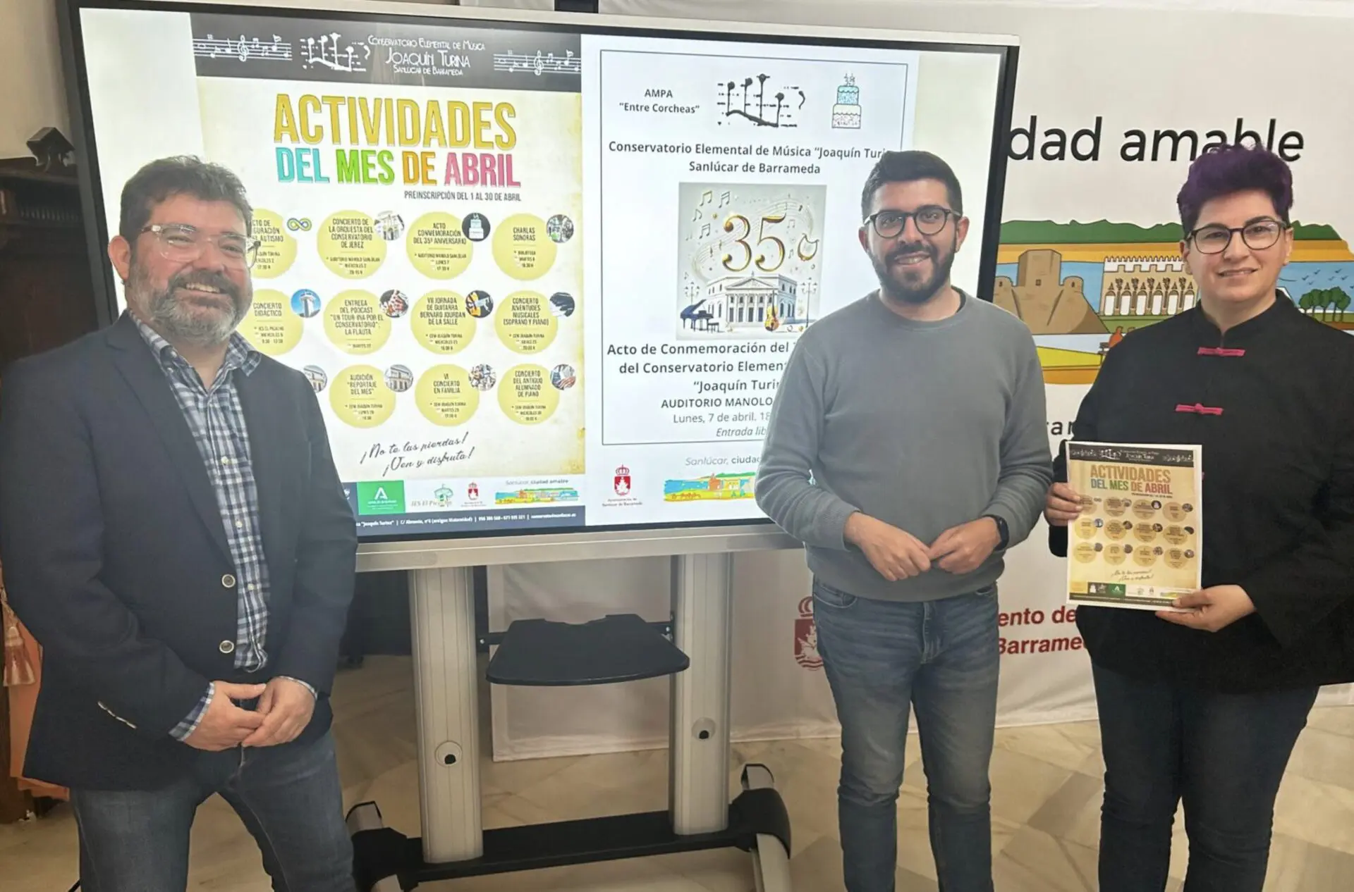 Hoy miércoles se ha presentado en el Palacio Municipal las actividades programadas con motivo del 35º aniversario del Conservatorio Elemental de Música ‘Joaquín Turina’, que conforman una variada agenda de eventos culturales y educativos a lo largo todo este mes de abril.