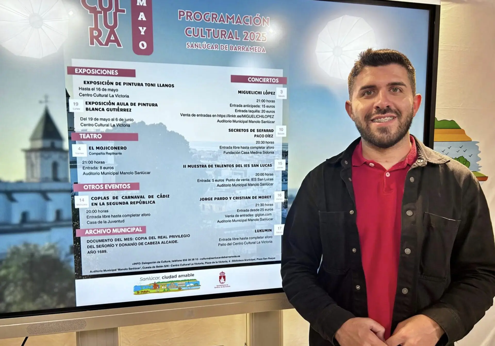 El Ayuntamiento de Sanlúcar ha dado a conocer el calendario de actividades culturales previsto para el mes de mayo. Se trata de una programación pensada para todos los públicos y gustos que combina música, teatro, exposiciones y otras actividades, según ha informado el delegado de Cultura, Narciso Vital.