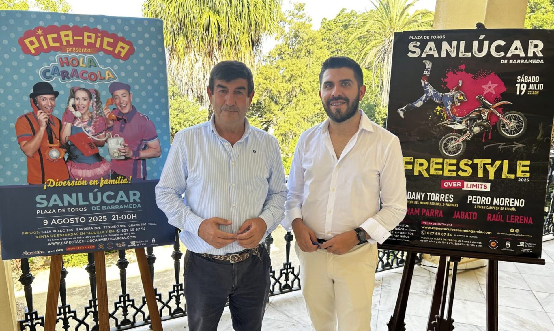 Carmelo García ha recordado que estos espectáculos se unen a otras dos grandes citas ya presentadas en el Ayuntamiento: el tributo a Julio Iglesias de la mano de Diego Ramos el 8 de agosto y el esperado concierto de despedida del mítico grupo de rock andaluz Medina Azahara el 10 de agosto.