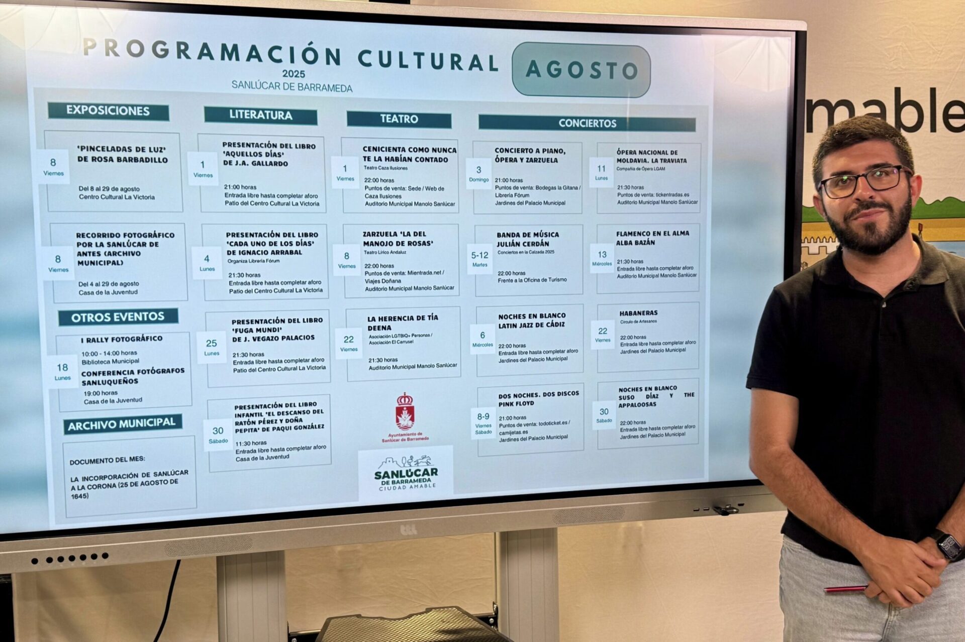 Desde el Archivo Municipal se ofrece como documento del mes La incorporación de Sanlúcar a la Corona (25 de agosto de 1645). La programación completa se puede consultar en la página web municipal: www. sanlucardebarrameda.es.