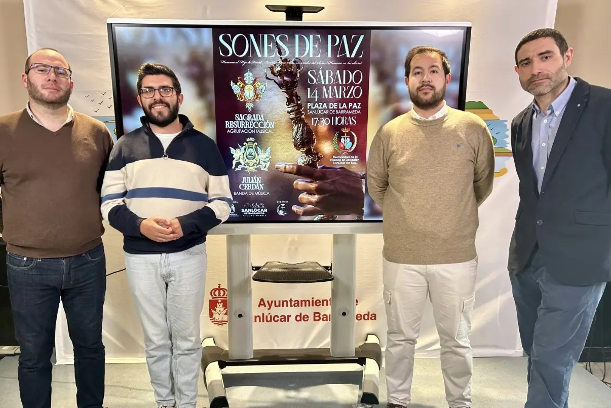 La Plaza de la Paz acogerá el próximo sábado 14 de marzo, a partir de las 17:30 horas, el concierto Sones de Paz, una cita musical que reunirá a la Asociación Filarmónica Banda de Música Julián Cerdán y a la Agrupación Musical Sagrada Resurrección. La iniciativa está organizada por la Hermandad de la Entrada en Jerusalén, conocida como Hermandad de la Borriquita, con la colaboración del Ayuntamiento de Sanlúcar.