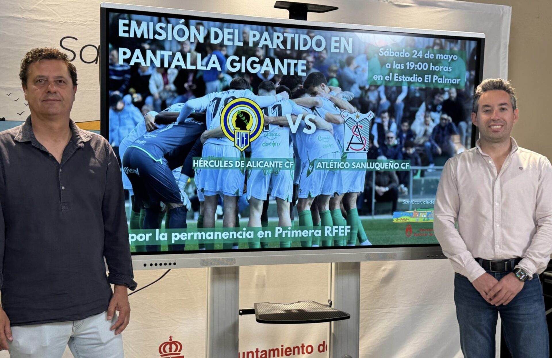 El Ayuntamiento de Sanlúcar instalará una pantalla gigante en el estadio de fútbol de El Palmar para que la afición vea en directo el partido que este sábado, a las 19:00 horas, jugará el Atlético Sanluqueño frente al Hércules CF en Alicante, el encuentro decisivo para la permanencia del club verdiblanco en Primera RFEF.