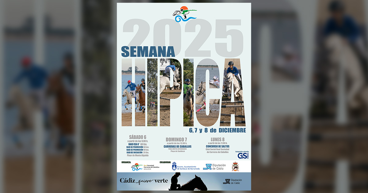 La tradicional Semana Hípica que organiza la Real Sociedad de Carreras de Caballos de Sanlúcar, dará comienzo este sábado próximo día 6 con la celebración de las diferentes pruebas de raid.