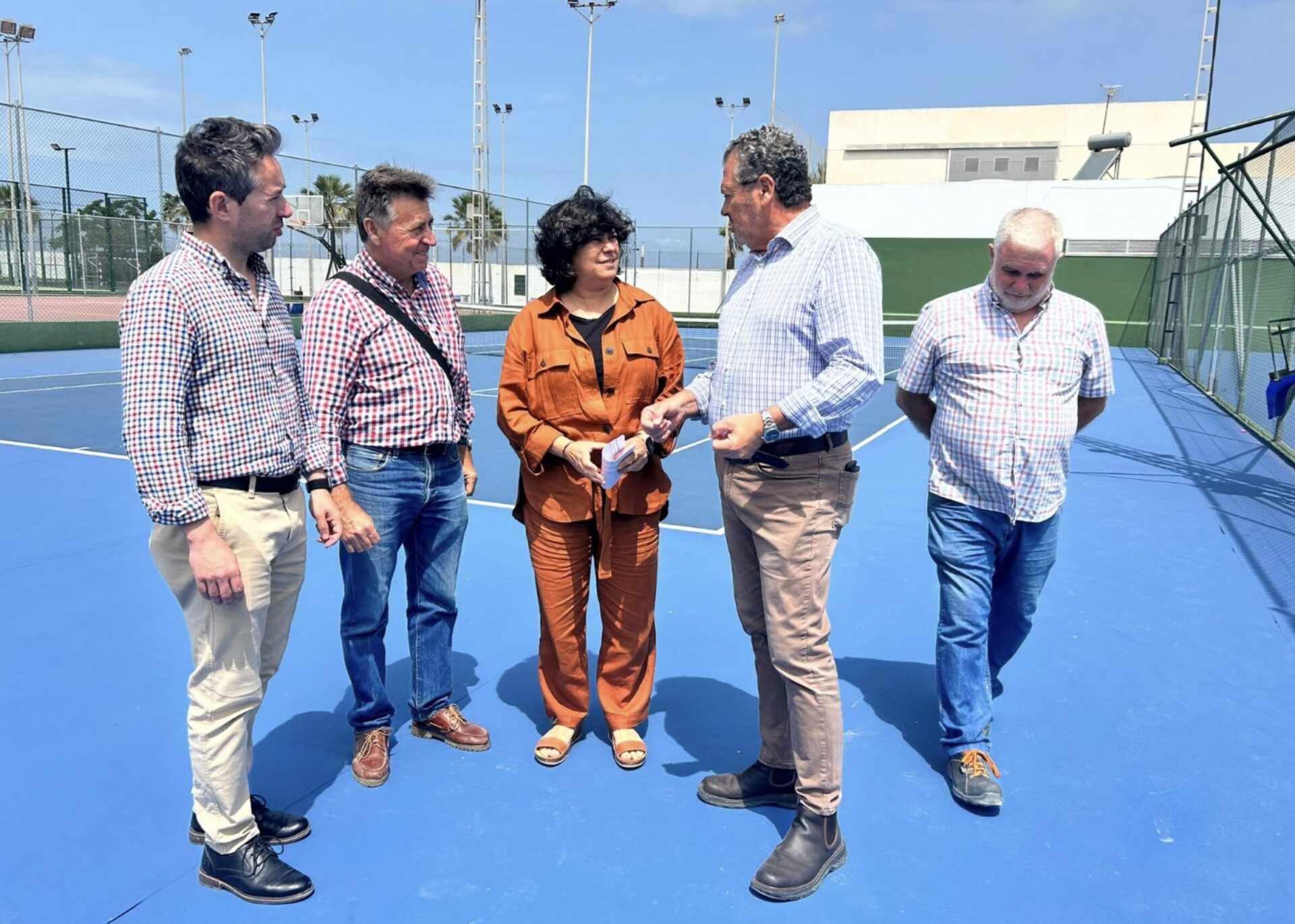 Acompañada por el delegado de Deportes, David González, la alcaldesa ha comprobado, por un lado, el resultado de los trabajos de adecuación de los vestuarios de la piscina del complejo, que se encontraban clausurados desde hacía años y volverán a estar en servicio a partir de este próximo verano. Esta actuación ha consistido en la rehabilitación integral de los mismos, incluida la sustitución de la cubierta, gravemente afectada por filtraciones de agua, y la instalación centralizada de producción de agua caliente sanitaria mediante placas solares, entre otras obras.
