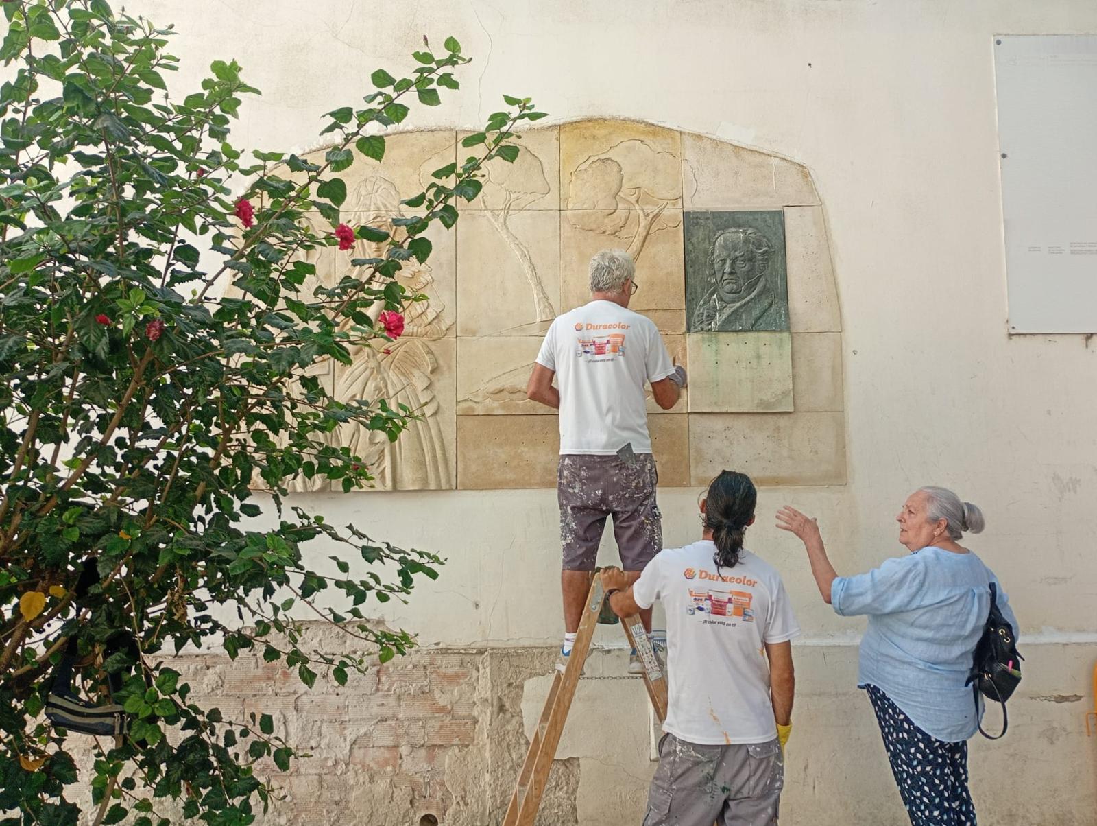El Ayuntamiento de Sanlúcar está llevando a cabo en estos días trabajos de restauración del bajorrelieve de homenaje a Francisco de Goya que se encuentra en la Plaza de la Victoria, cuya autora es María José Gómez Santiago, artista sanluqueña que recibió la Insignia de Oro de la Ciudad en 2024.
