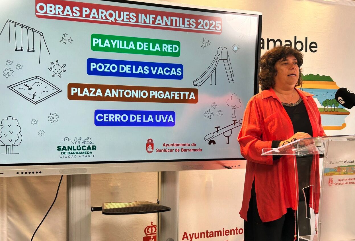 La alcaldesa de Sanlúcar, Carmen Álvarez, ha anunciado este martes la ejecución de obras de mejora en cuatro parques infantiles de la ciudad, con el objetivo de tenerlos renovados antes de que finalice el año. Las actuaciones se llevarán a cabo en la Playilla de la Red, el Cerro de la Uva, la barriada del Pozo de las Vacas y la plaza Antonio Pigafetta, donde se ubican los juzgados y el multicine.