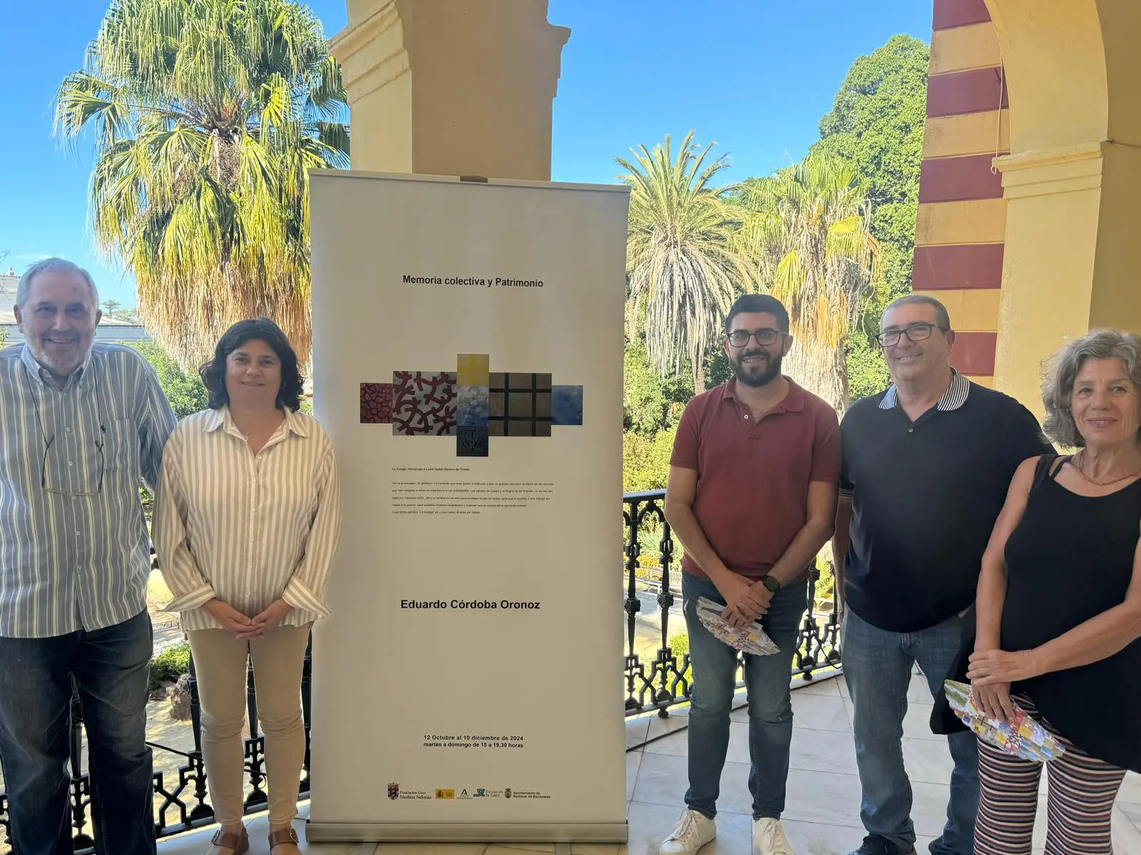 El Palacio Municipal ha acogido hoy la presentación del cartel anunciador de la exposición ‘Memoria colectiva y patrimonio’, una nueva muestra del pintor y escultor navarro Eduardo Córdoba. La exposición, que podrá visitarse desde el 12 de octubre hasta el 10 de diciembre en los jardines del Palacio Ducal, cuenta con el respaldo de la Fundación Casa Medina Sidonia, junto a otras administraciones y el grupo sanluqueño Amigos de Patrimonio.