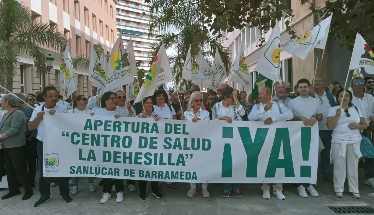 La delegación sanluqueña, encabezada por la coordinadora local de IU y alcaldesa de Sanlúcar, Carmen Álvarez, ha participado con una pancarta que reclamaba directamente a la Junta de Andalucía la puesta en marcha del centro sanitario. Según ha denunciado la formación, el edificio “está completamente terminado, vacío y sin recursos”, mientras los vecinos siguen soportando listas de espera y falta de personal médico en los centros de atención primaria.