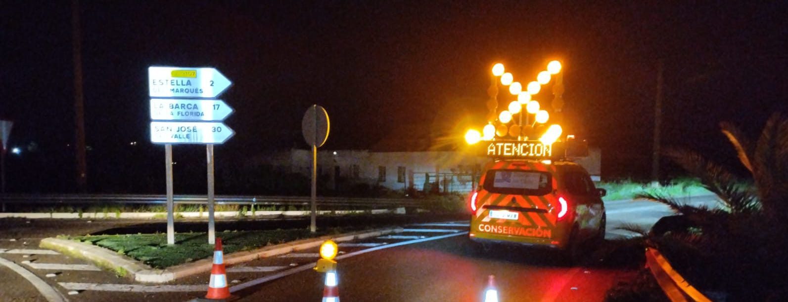 Este trabajo se ha prodigado en más de diez vías: en primera instancia señalizando los tramos que debían cortarse al tráfico, al no poder garantizarse unas óptimas condiciones de seguridad vial; tras la retirada de las aguas, procedentes del arroyo Salado en la mayoría de los casos, los operarios se han afanado en la retirada de barro, sedimentos e incluso árboles desprendidos además de proceder a la limpieza de las calzadas. Con las plataformas expeditas se han reabierto varias carreteras, si bien indicando mediante señales las condiciones de la circulación y las limitaciones de velocidad.