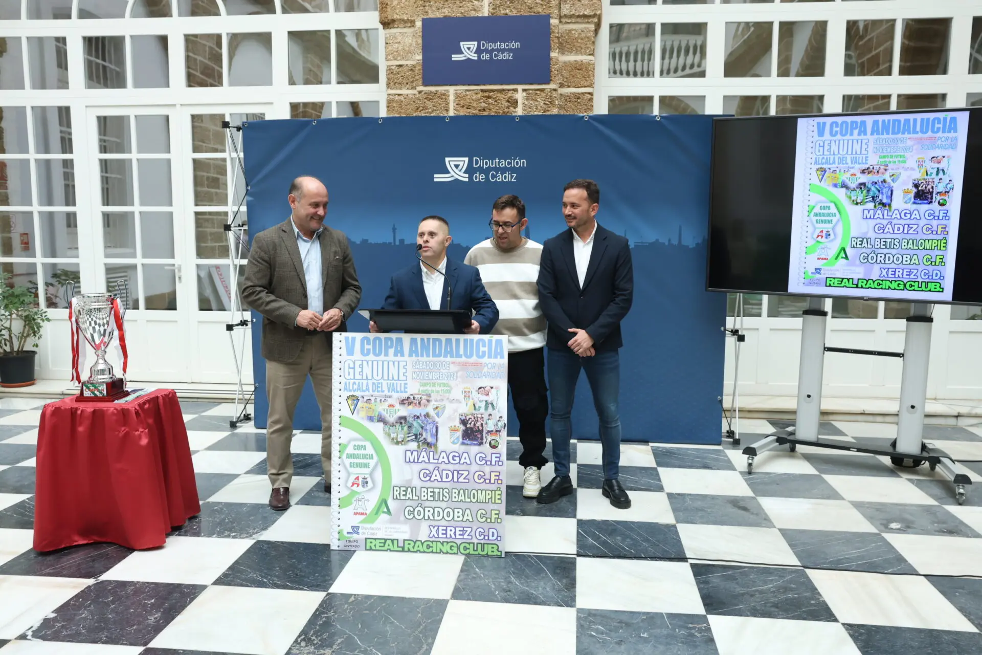 La Diputación de Cádiz es una de las entidades colaboradoras de este evento junto con el colectivo APAMA de la localidad alcalareña y la Junta de Andalucía. El vicepresidente primero de la institución provincial, Juancho Ortiz, ha acompañado al concejal de Deportes de Alcalá del Valle, Juanfran Romero, y a los miembros de APAMA, Manuel y Chico, en la presentación del evento. La Diputación de Cádiz viene colaborando con la organización de la Copa Andalucía Genuine desde que iniciara su andadura en el año 2019.