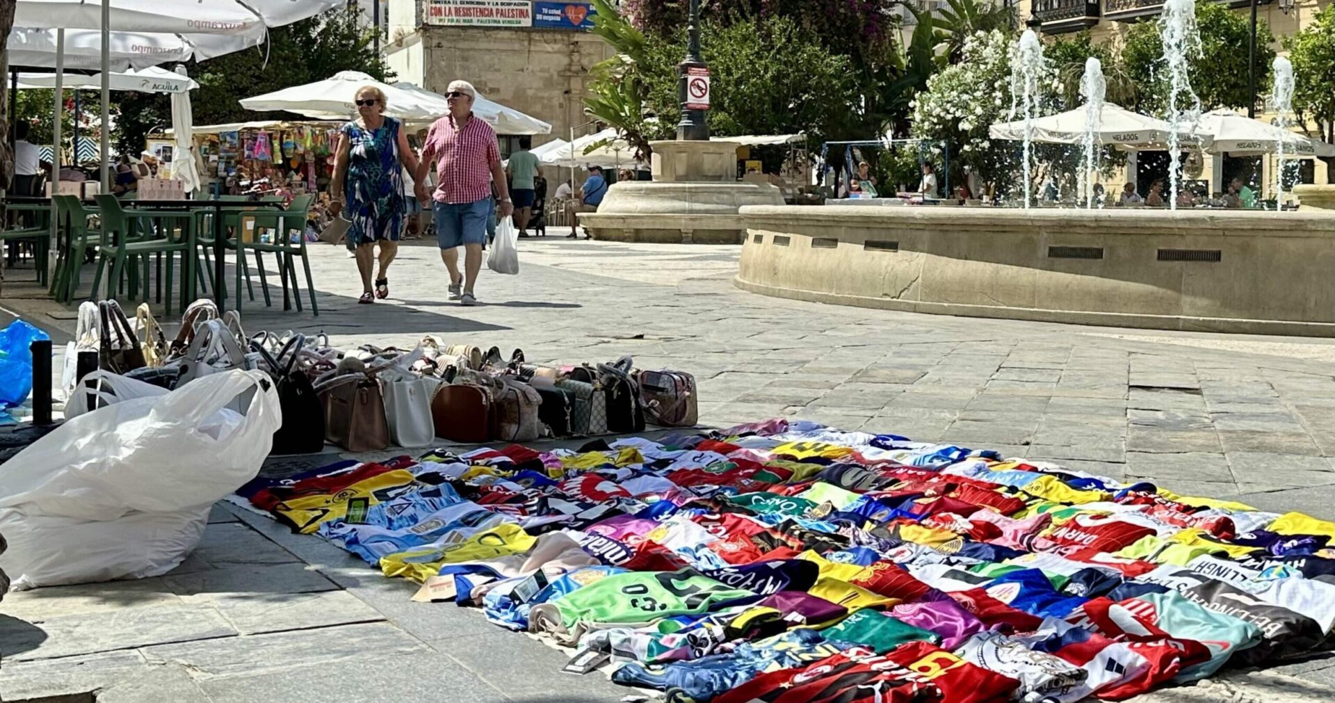 En pleno verano, la plaza más icónica de Sanlúcar de Barrameda se ha convertido en el epicentro de una problemática en aumento: la proliferación de vendedores ilegales, conocidos como manteros. Comienzan a instalarse a primera hora de la mañana y algunos aguantan ininterrumpidamente hasta bien pasada la medianoche.