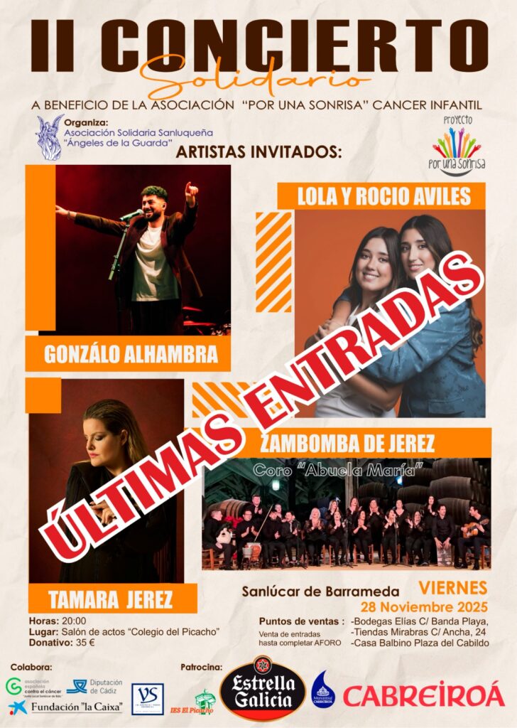 La Asociación Solidaria Sanluqueña Ángeles de la Guarda ha anunciado la celebración del II Concierto Solidario, un evento benéfico cuya recaudación se destinará a la asociación ‘Por una Sonrisa’, dedicada a mejorar la calidad de vida de menores con cáncer.