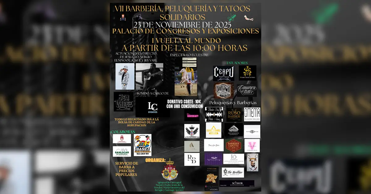 El Centro Municipal de Exposiciones y Congresos ‘Primera Vuelta al Mundo’ acogerá el próximo domingo 23 de noviembre, a partir de las 10:00 horas, la VII Barbería, Peluquería y Tatoos Solidarios, un evento organizado por la Agrupación Parroquial de Jesús de la Bondad con la colaboración del Ayuntamiento a través de la Delegación de Fiestas.