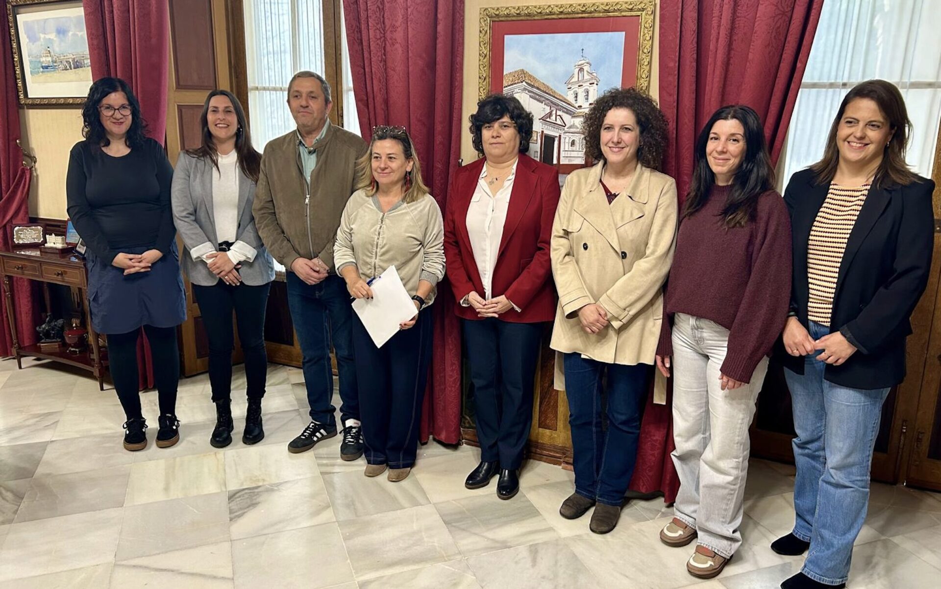 La alcaldesa de Sanlúcar de Barrameda, Carmen Álvarez, ha recibido en el Palacio Municipal a las cinco profesionales que se han incorporado para la puesta en marcha de la oficina de inserción sociolaboral para colectivos vulnerables, prevención del absentismo escolar y apoyo a la población migrante, que estará ubicada en el Centro de Servicios Sociales Comunitarios del Barrio Alto.