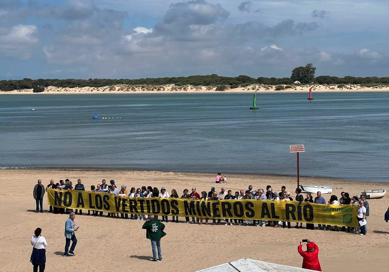 Diferentes organizaciones sociales y ecologistas celebraron el pasado sábado una concentración en la playa de Bajo de Guía, frente a la capilla del Carmen, para rechazar los vertidos mineros al río Guadalquivir autorizados por la Junta de Andalucía y advertir de sus posibles consecuencias en el tramo bajo del estuario.