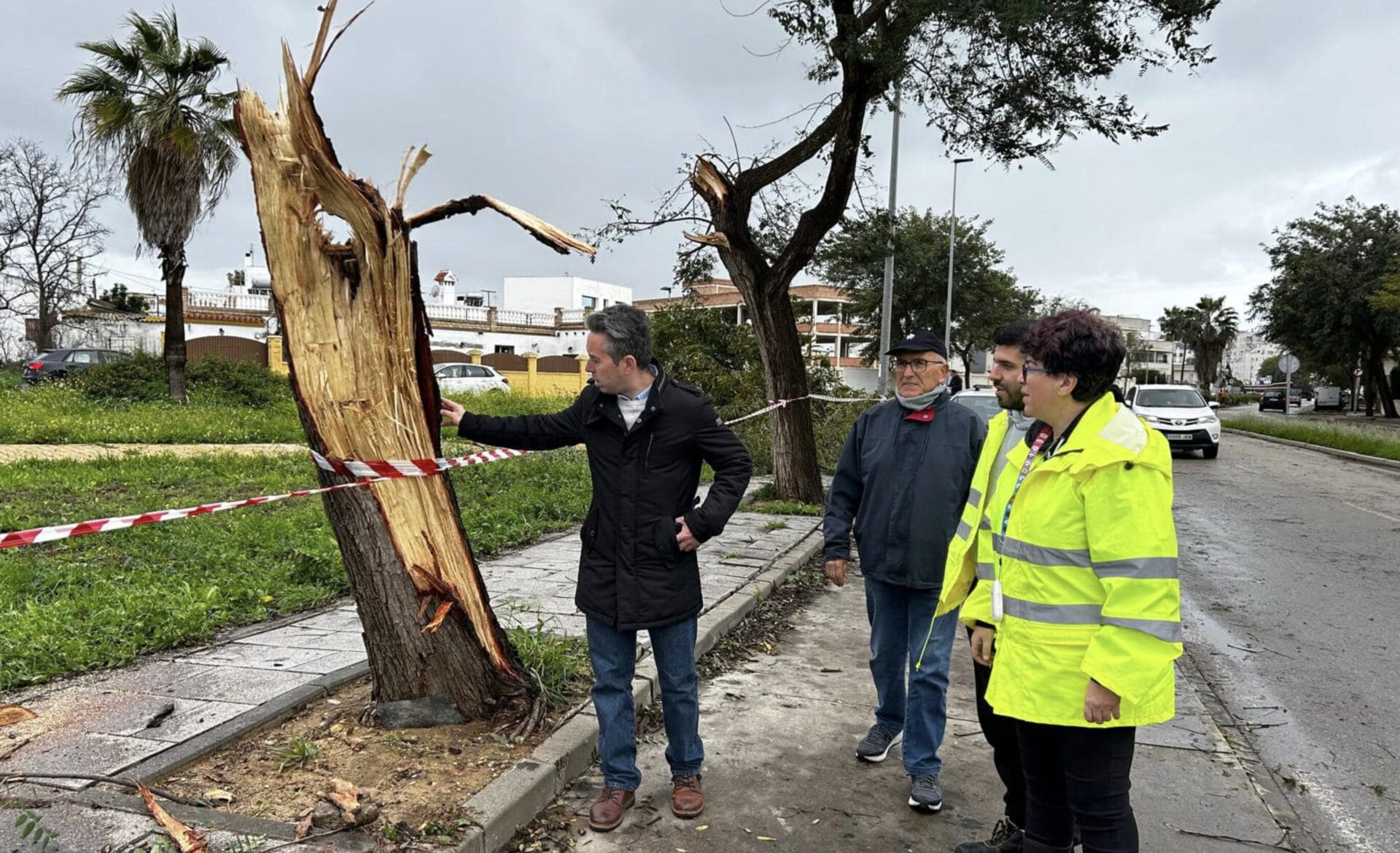 La avenida de la Mazanilla y su entorno han sido una de las zonas más castigadas por este temporal, donde un tornado ha provocado la caída de árboles e incluso ha llegado a arrancar de cuajo el vallado de una propiedad privada.