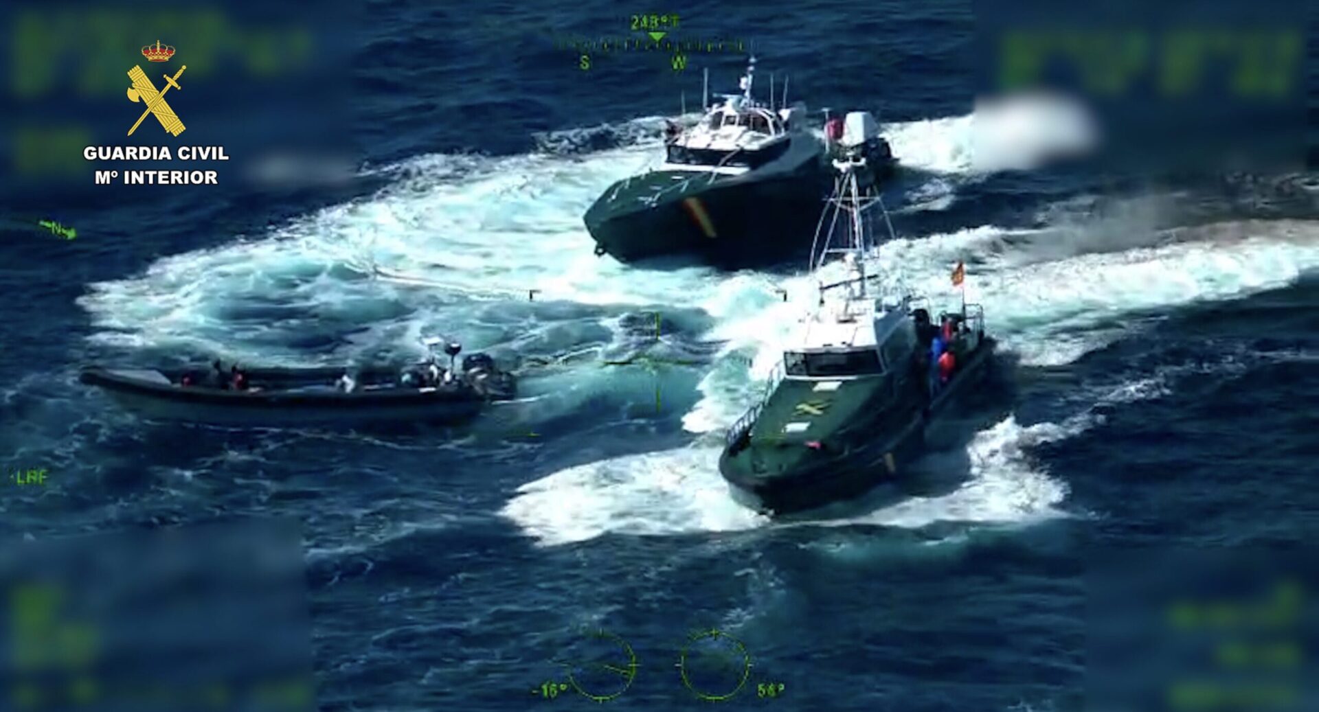 Durante la persecución, la lancha cargada con la droga intentó huir, apoyada por otras dos embarcaciones de alta velocidad que acudieron para entorpecer la actuación policial e impedir la interceptación. Sin embargo, las maniobras coordinadas desde el mar y el aire permitieron a la Guardia Civil interceptar la embarcación principal, de 14 metros de eslora y equipada con cuatro motores de 350 caballos, procediendo a la incautación de los 1.700 kilos de hachís y la detención de los cuatro tripulantes.