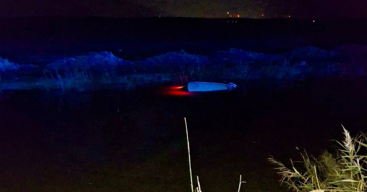 Una dotación del Consorcio de Bomberos de la Provincia de Cádiz ha rescatado en la noche de este martes 6 e enero a un conductor atrapado en su vehículo tras salirse de la vía y caer a un canal de agua en la Carretera del Práctico, en Sanlúcar de Barrameda.