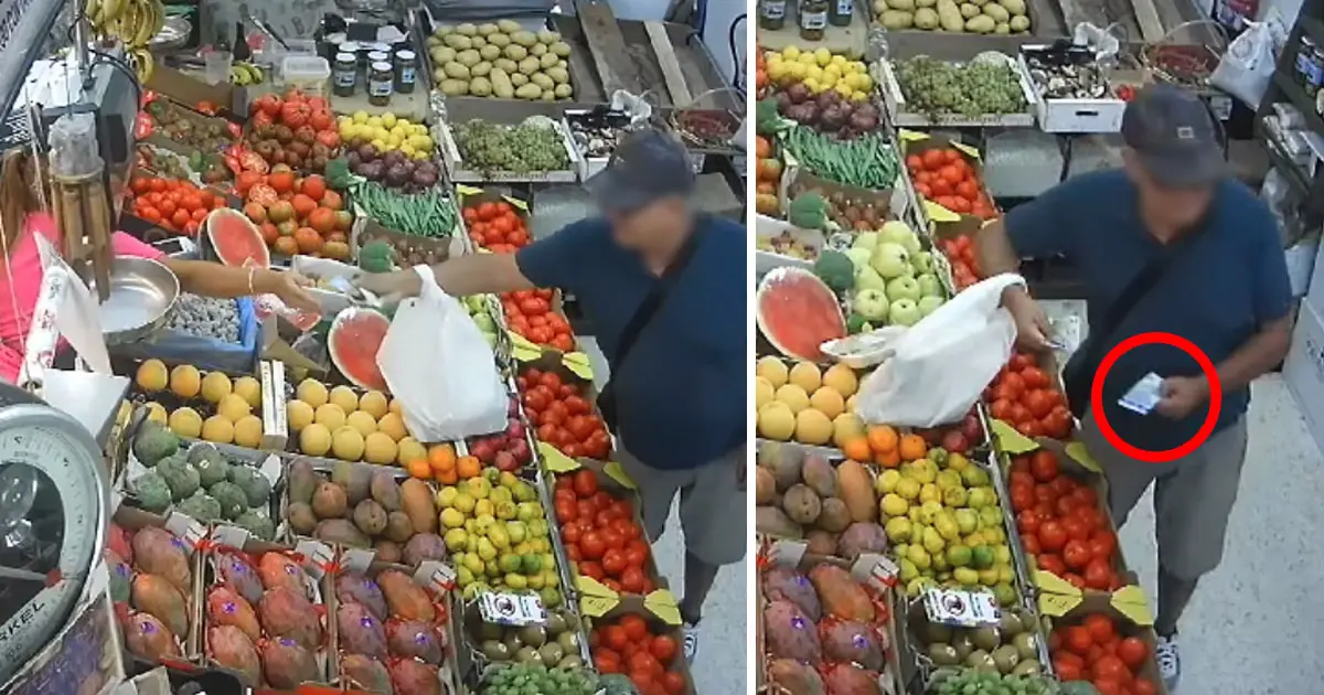 Un presunto estafador ha engañado a una de las dependientas de la Frutería La Huerta, ubicada en la calle Nao Victoria, junto al V Centenario. En un vídeo difundido en redes sociales por el propietario del negocio, se observa cómo el individuo, a simple vista de avanzada edad, lleva a cabo la “jugarreta” en apenas unos segundos.